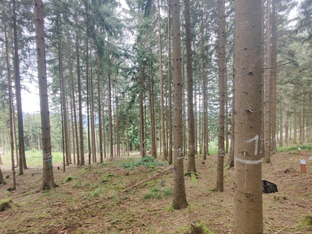 Forest Pure Norway Spruce (Picea abies). This area has loamy soils, a mean annual temperature of 8.5ºC, elevations from 277-493 meters, and 815-1029 mm annual rainfall.