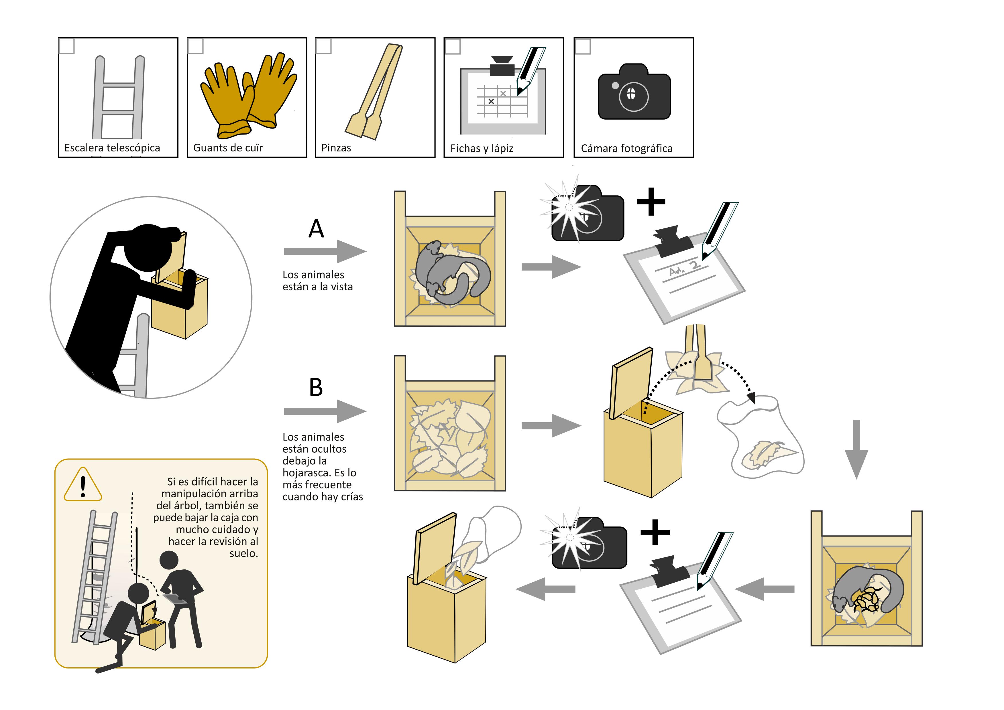 Durante las revisiones de las cajas es importante seguir y rellenar la Ficha de campo del protocolo básico.